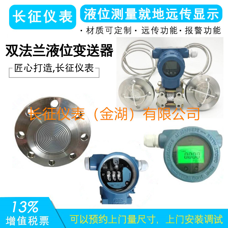 雙法蘭液位變送器是測量變送器兩端壓力之差的變送器,輸出標準信號(如 4~20mA、1~5V)。差壓變送器與一般的壓力變送器不同的是它們均有2個壓力接口, 差壓變送器一般分為正壓端和負壓端,一般情況下, 差壓變送器正壓端的壓力應大于負壓段壓力才能測量。